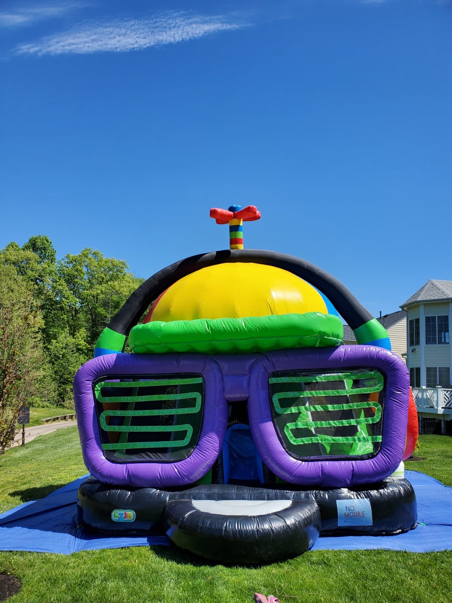 The DJ Disco Dance Party Bounce House is an awesome rental for a kids birthday party, fundraiser, school festival or social event. Kids can jump and dance to their favorite tunes under the LED disco lights. Don't miss out on the jumping dance party and rent yours today.