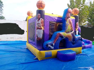 The Kobe Wet/Dry slide is an awesome rental for a kids birthday party, fundraiser, school festival or social event. Kids can jump and slide down to cool off in the pool and also enjoy dunking the ball in the hoop located inside the bounce area. Don't miss out on all the fun rent yours today.