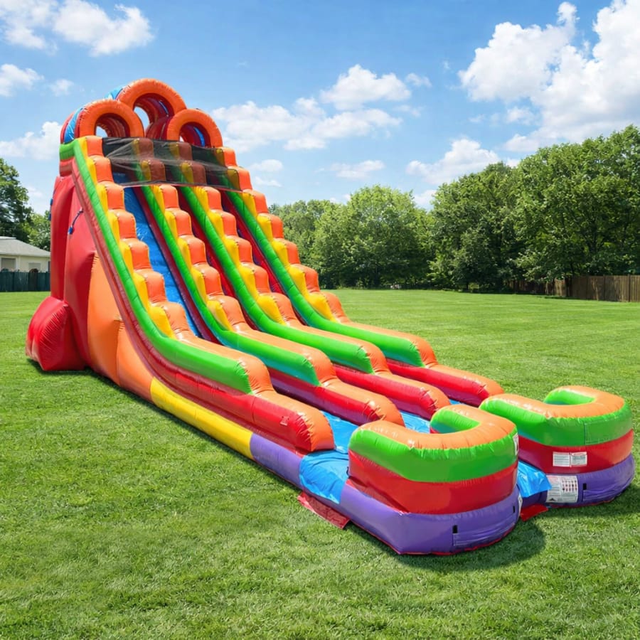 Rainbow 21ft Dual Lane Slide — Big, Bright, and Built for Fun 🌈🎉
