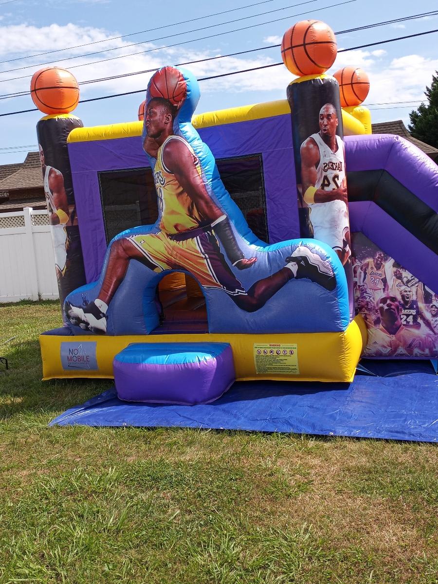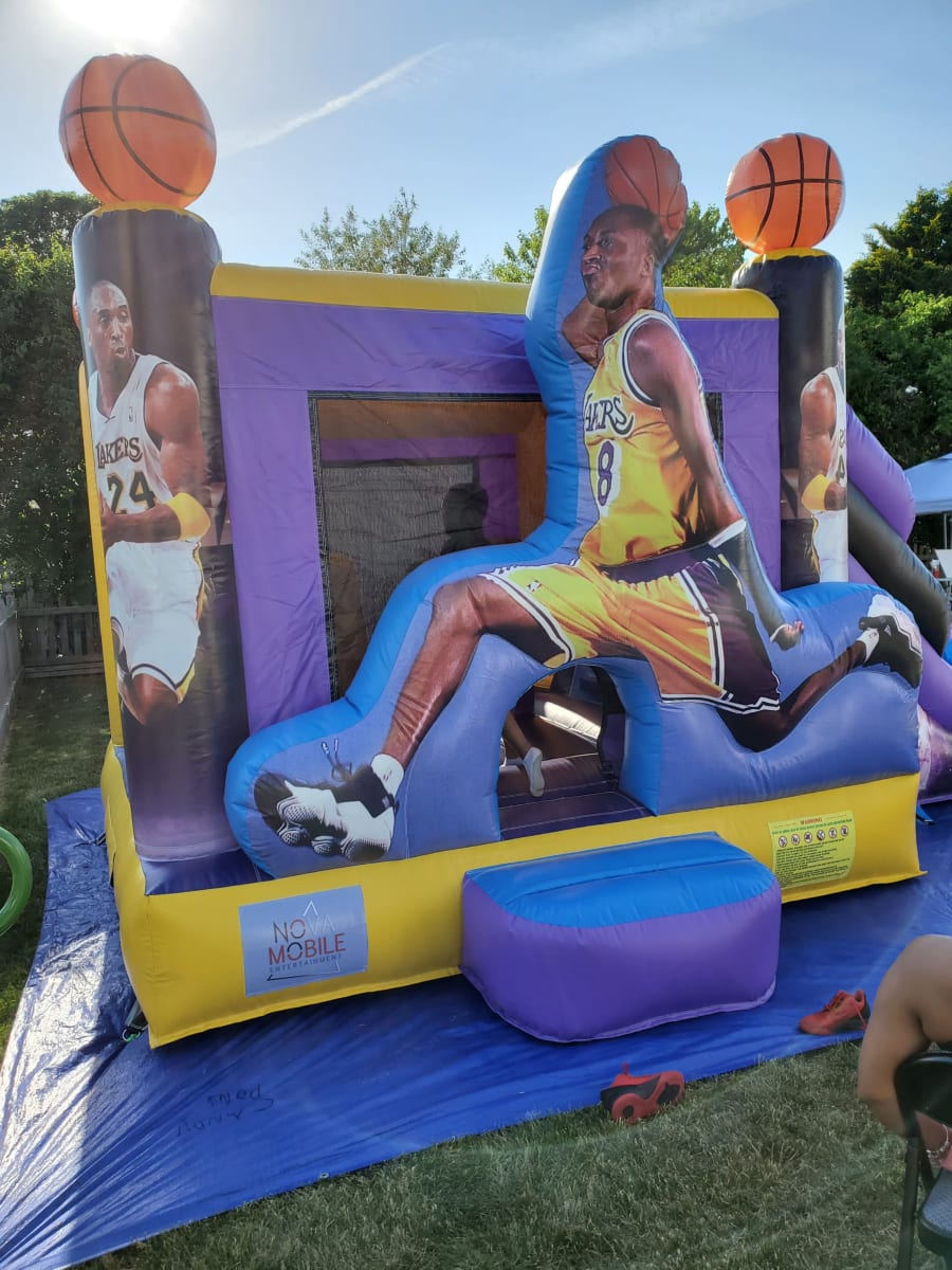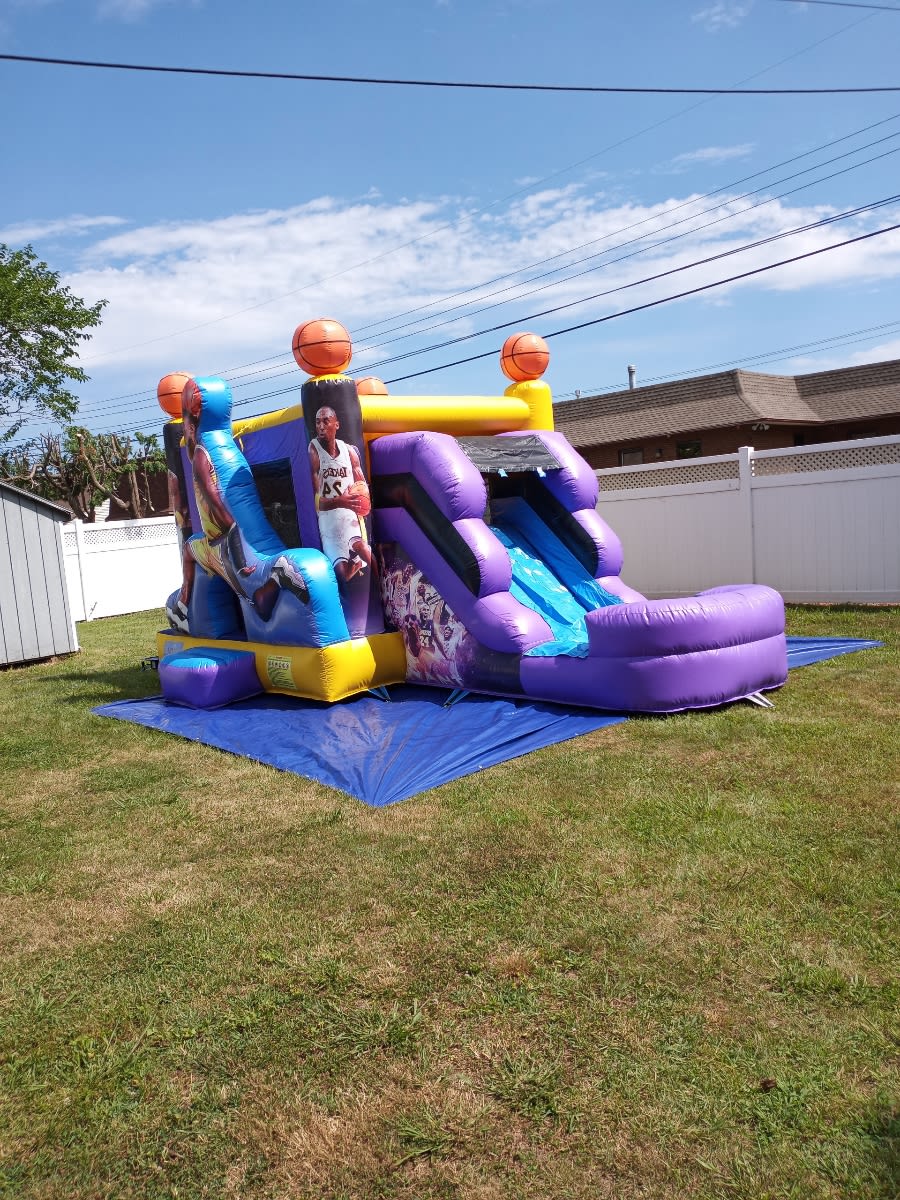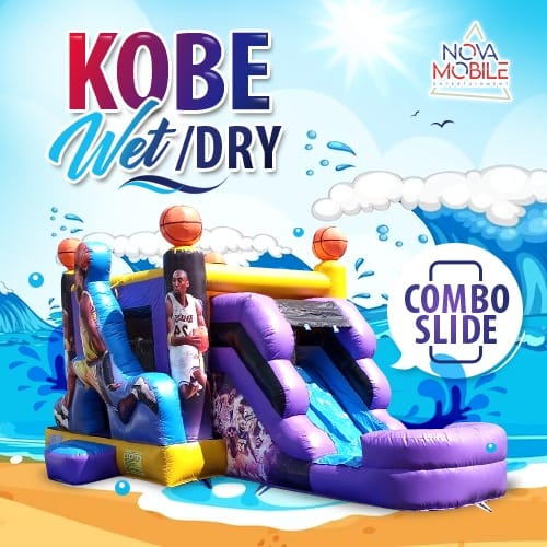 The Kobe Wet/Dry slide is an awesome rental for a kids birthday party, fundraiser, school festival or social event. Kids can jump and slide down to cool off in the pool and also enjoy dunking the ball in the hoop located inside the bounce area. Don't miss out on all the fun rent yours today.