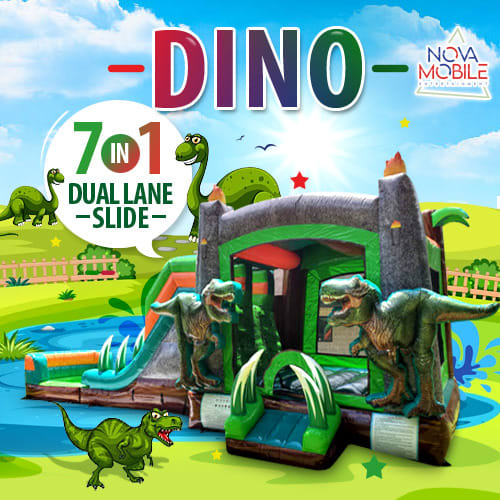 We’re proud to offer main service DINO 7-IN-1 DUAL LANE SLIDE in Manassas, Gainesville, Bristow, Centreville, Aldie, Fairfax, Burke, Herndon and surrounding areas. Our team delivers, sets up, and ensures everything is ready for safe and fantastic fun, making your event planning stress-free.