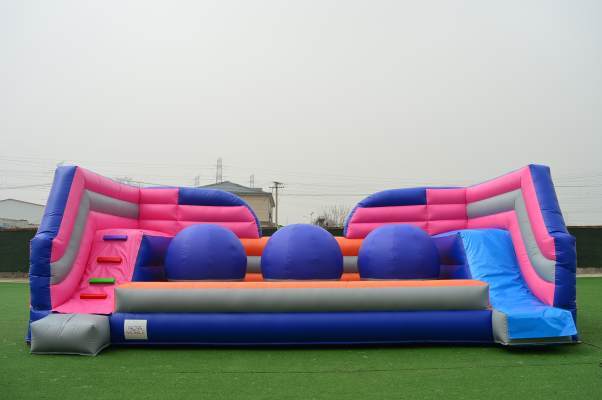 The Wipeout inflatable is full of fun and excitement. All the fun begins as one player attempts to run from one side of the inflatable to the other. The player must jump from one ball to the other trying to make it to the other side without falling. Its a bit of a speed and balancing game for the fun at heart. Are you up for the challenge?