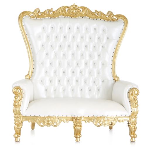 Designed with regal elegance in mind, our Double Throne Chair features a luxurious white upholstery adorned with intricate gold accents. The ornate detailing and plush cushioning provide both comfort and style, creating a truly majestic seating option for your guests.