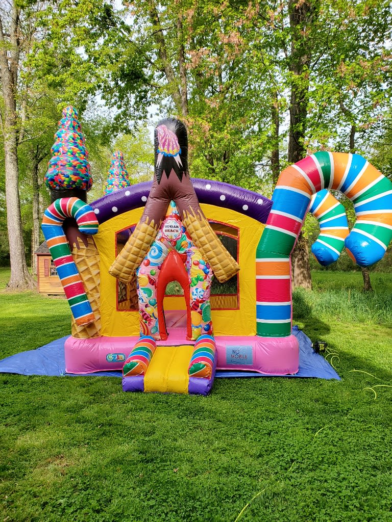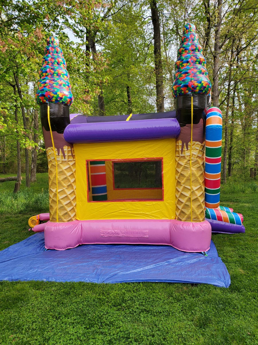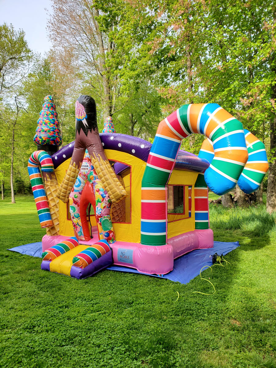 Let the kids enjoy the fun with our Sugar Shack Bounce House. This beautiful design decorated with candy canes, ice cream cones, and a variety of candies will amaze the crowd. Children will be absolutely thrilled and benefit from the exercise.