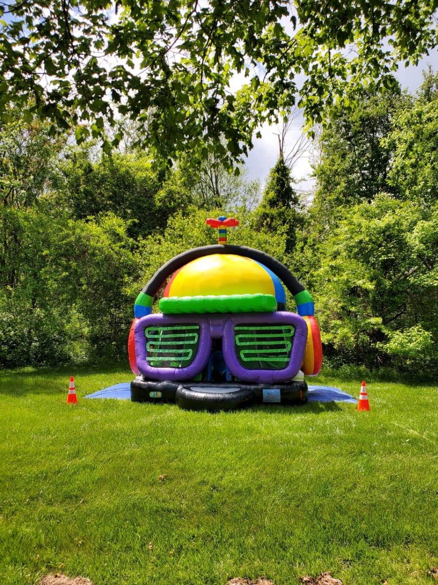 The DJ Disco Dance Party Bounce House is an awesome rental for a kids birthday party, fundraiser, school festival or social event. Kids can jump and dance to their favorite tunes under the LED disco lights. Don't miss out on the jumping dance party and rent yours today.